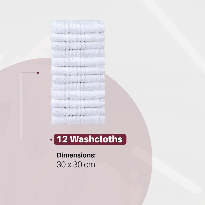 Indus Textiles 100% Egyptian Cotton Flannel Face Cloths Wash Towels - 12 pack - White - 30x30CM