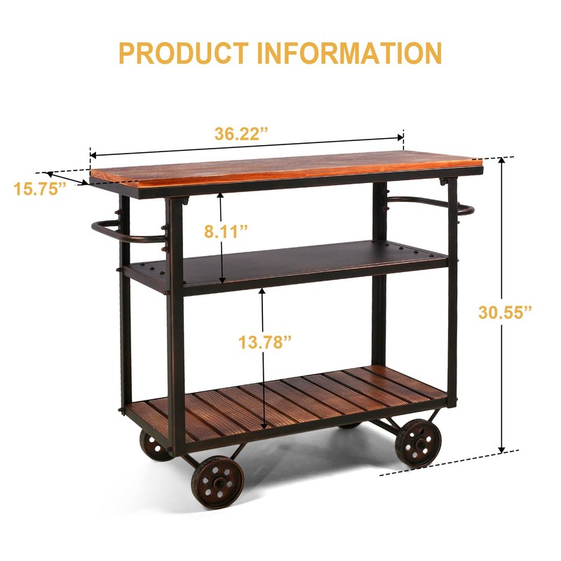 - 【Industrial Fashion Style】Vintage industrial metal frames paired with high-quality brown wood panels are the perfect choice for your furniture. The characteristic design combines retro and modern elements, making the cart look elegant and charming, suitable for various styles of scenes.
