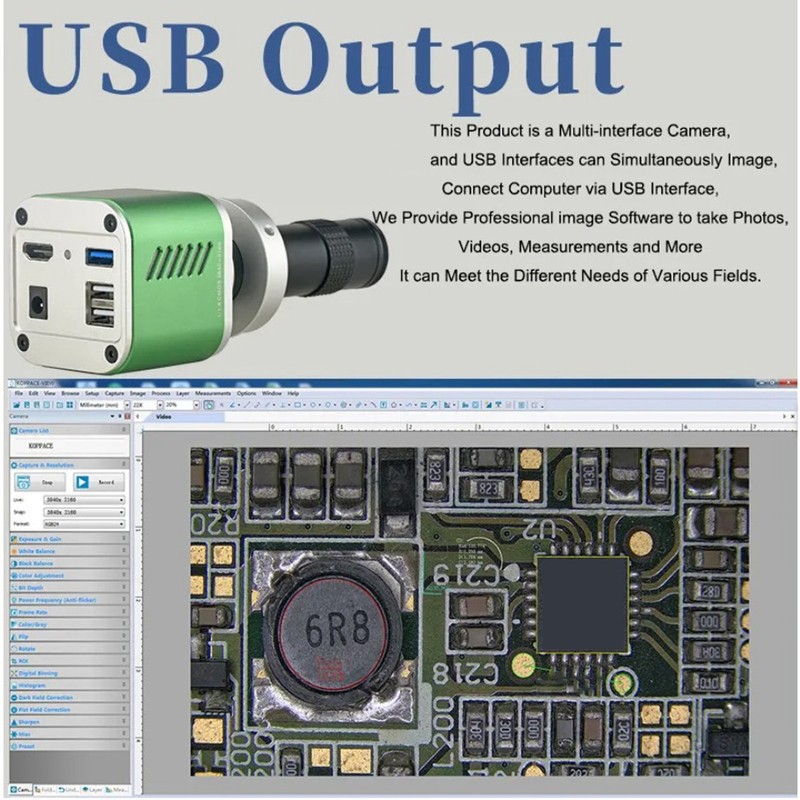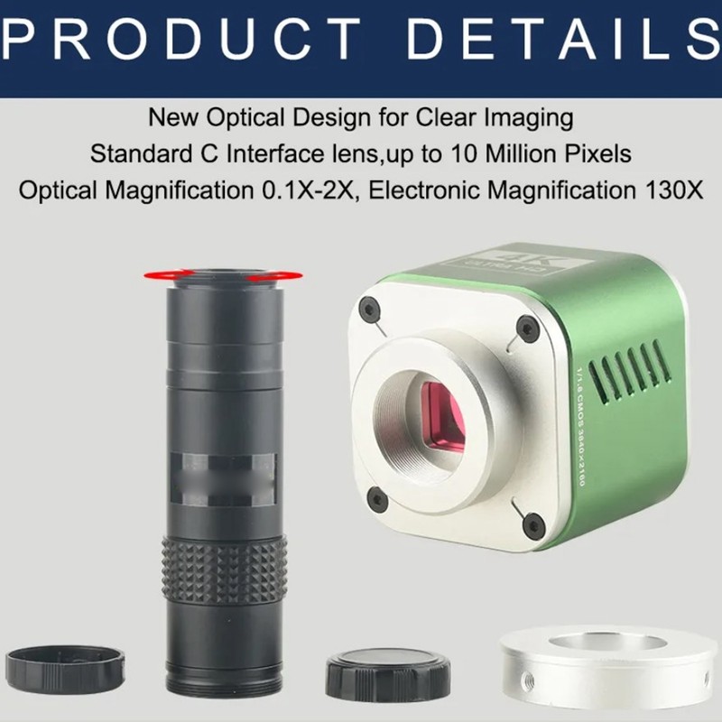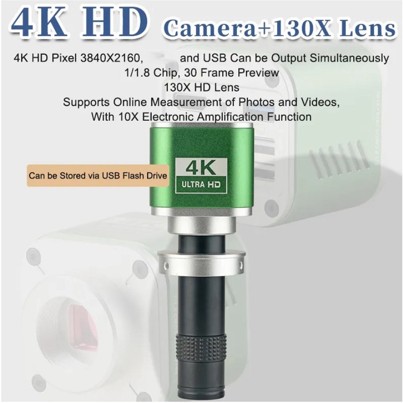 Industrial Microscope Camera 8.3MP 4K USB Output with 130X Lens 100‑240V AC for Inspection US Plug