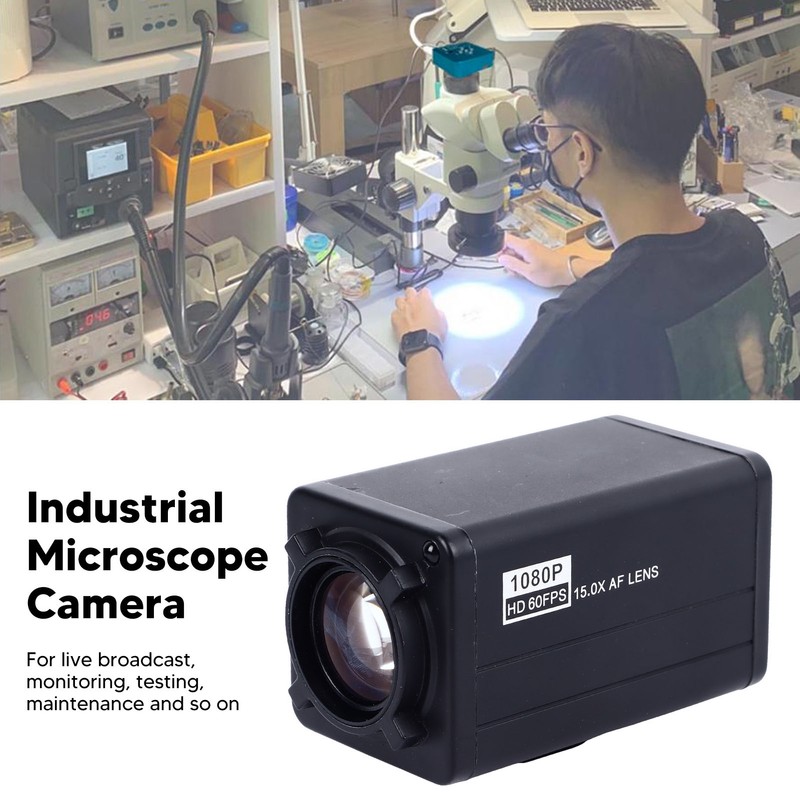 Industrial Microscope Camera HD 2MP Digital Video Professional Electronic Auto Manual Focus for Live Black