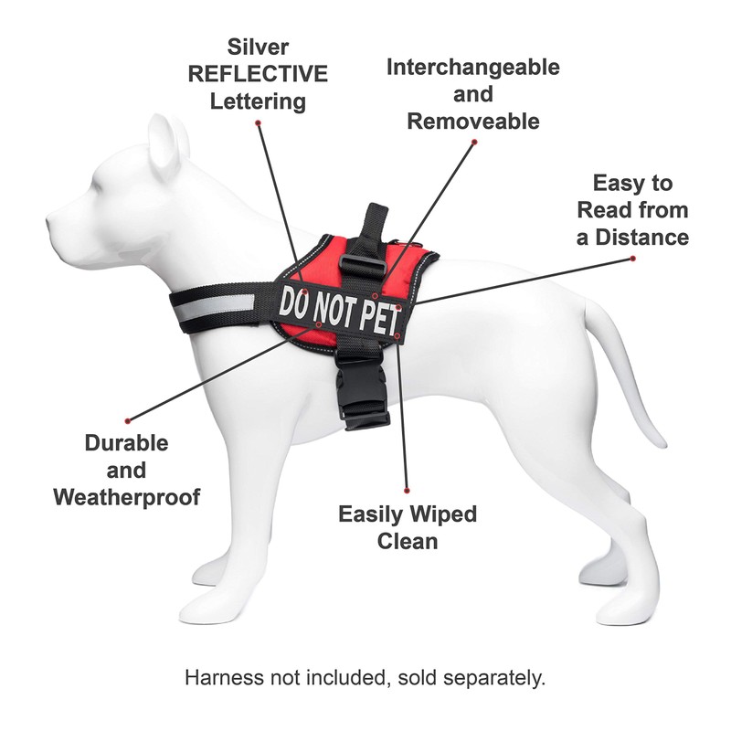 • DO NOT PET me patch has a Hook back for secure attachment. Reminder to others to please not touch your working animal.