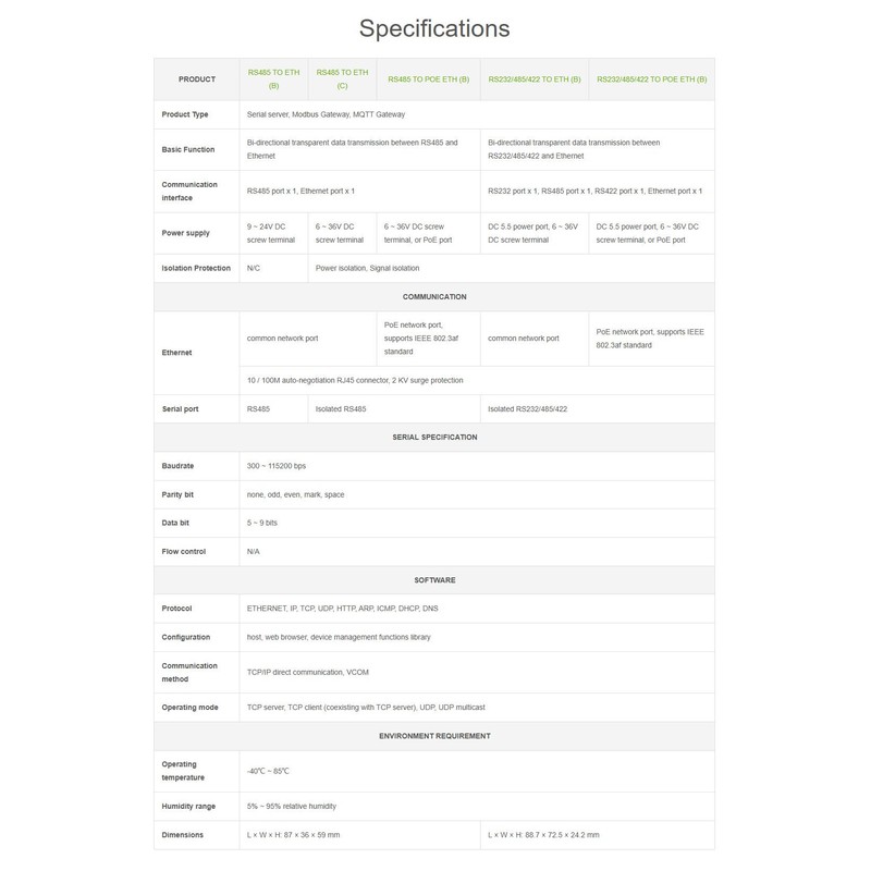 between RS485 and Ethernet. This rail-mount RS485 serial server combines multiple functions, including Modbus gateway, MQTT gateway, RS485 to JSON