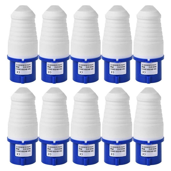 Industrial Socket Connector, 3 Pin Power Industrial Circular Connector, BEM-013 10Pcs IP44 Waterproof Plug 16A 220-250V, Flame Retardant