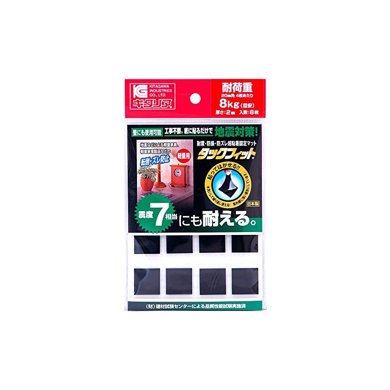 - TF-20K-2 Earthquake Resistant Mat, Withstands Seismic Levels of 7, Tuck Fit, 8 Pieces, Square 0.8 inches (20 mm), Thickness 0.1 inches (2 mm), Load Capacity 17.6 lbs (8 kg), For Light Weight Vases and Figurines