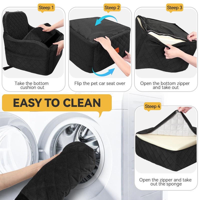 - 【Safe and Secure】This pet car seat features a built-in adjustable safety belts to secure your dog’s harness, preventing them from jumping out the window.The non-slip bottom and headrest strap keep the seat stable and secure, ensuring your pet stays safe and comfortable throughout the journey.