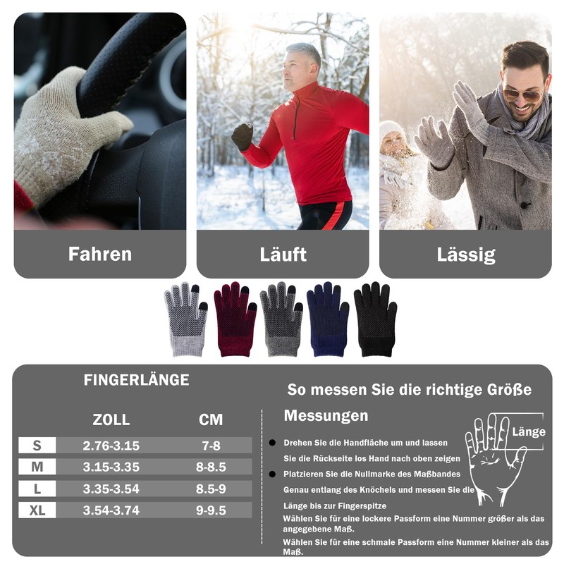 - Comfortable and warm, stretchy cuffs: they have elastic wrists and tightly knitted cuffs to protect against wind. There are different sizes to choose from so that the winter gloves fit your hand and increase dexterity while keeping you warm