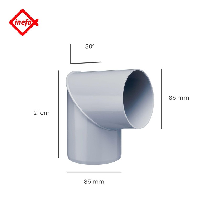 - Allows two downpipes to be aligned in the same size at an 80° angle