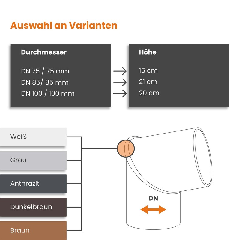 - Flexible installation: the downpipe bend allows flexible installation of the downpipe at an 80° angle and serves as a connecting element between drain pipe and downpipe