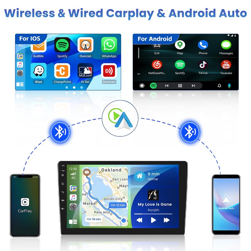 • Wireless CarPlay and Android Car This Android radio supports both wireless/wired CarPlay and wireless/wired Android car access to phone features such as music, navigation, calls, notifications and more