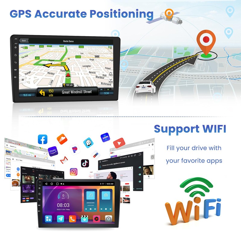 • GPS Navigation & Offline Maps The upgraded car stereo has a built-in GPS module that is compatible with navigation apps such as Waze. Connect via WiFi/Hotspot to use online maps and enjoy more