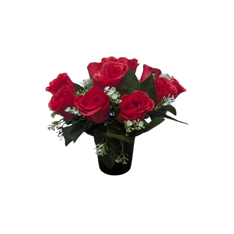 INERRA Cemetery Grave Flower Pot with Artificial Red Roses