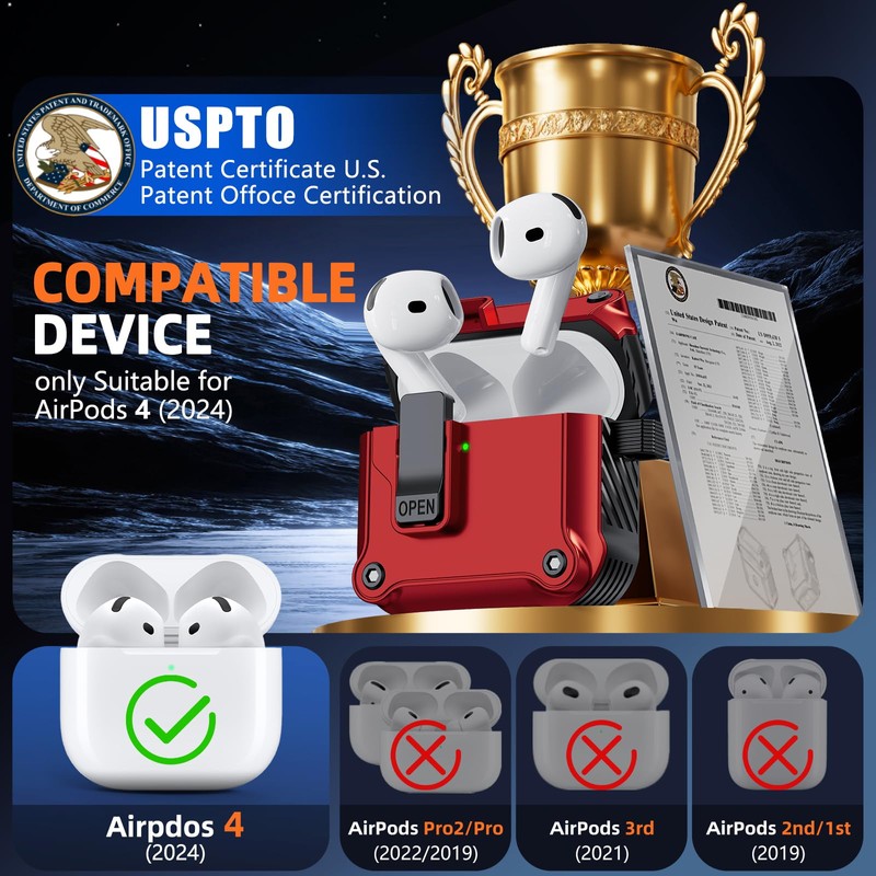 - 【Compatible Device 】 Automatic Snap Switch Secure Case Simple installation and it fits the Compatible with Apple AirPods 4th Generation (2024), ( Not Compatible Airpods 1/2/3 Pro Pro2)