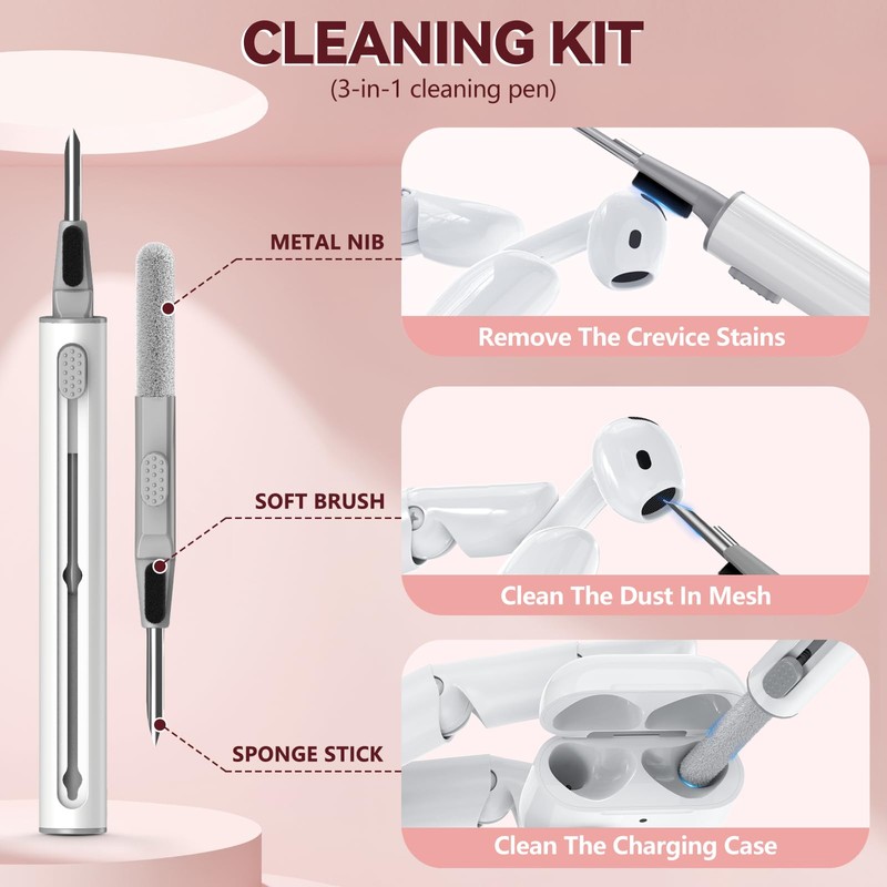 - 【Double-end Cleaning Pen】: One-piece cleaning pen design - one side pulls down for the open cleaning brush. The other side pulls down for the plush brush bristles and round metal tip. Convenient dual-ended hidden design, Cleaning pen can also be used to clean mobile phones, keyboards, other electronic devices