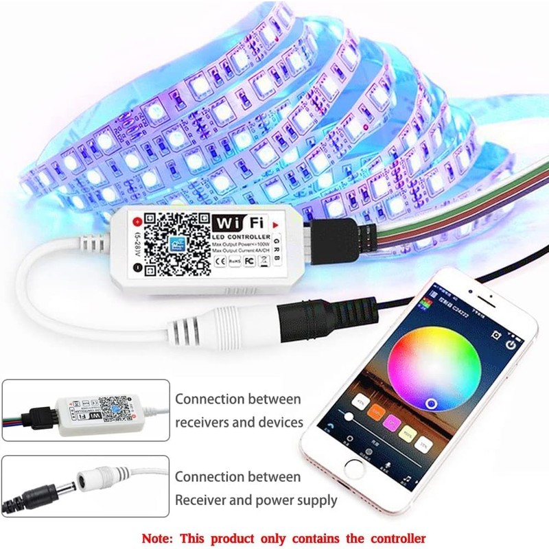 iNextStation iNextStation Mini RGB LED strip controller DC12-24V with Wifi/App controlled, remote control work controller with Alexa/Google Assistant/IFTTT Android/IOS for all 2835 3528 5050 LED strip