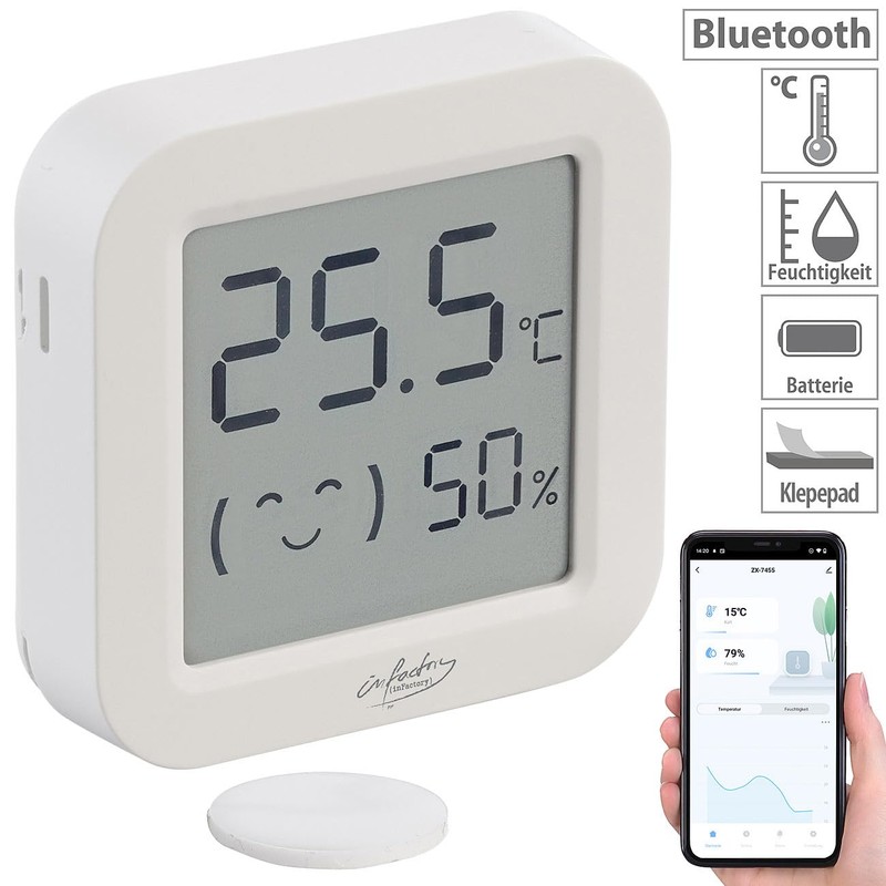 infactory Mini Thermometer: Set of 4 Mini Thermo/Hygrometer, Comfort Display, LCD, Bluetooth, App (Digital Temperature Display, Data Logger Temperature, Humidity Sensor)