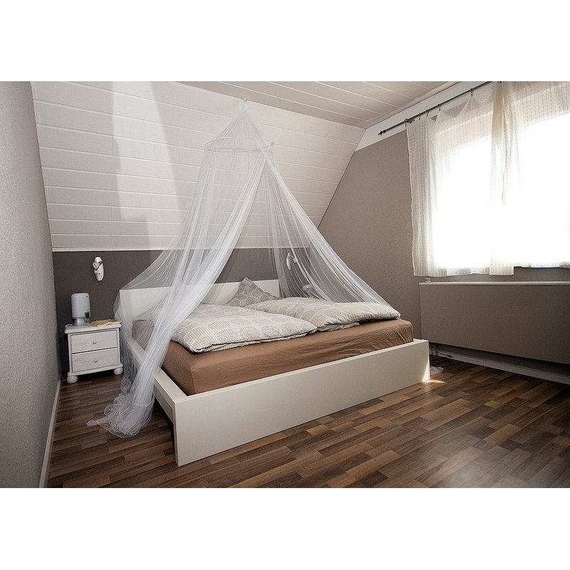 - Mosquito net in XXL size, ideal for double or futon beds. Ceiling ring for easy attachment with a hook to the ceiling. Includes instructions in German