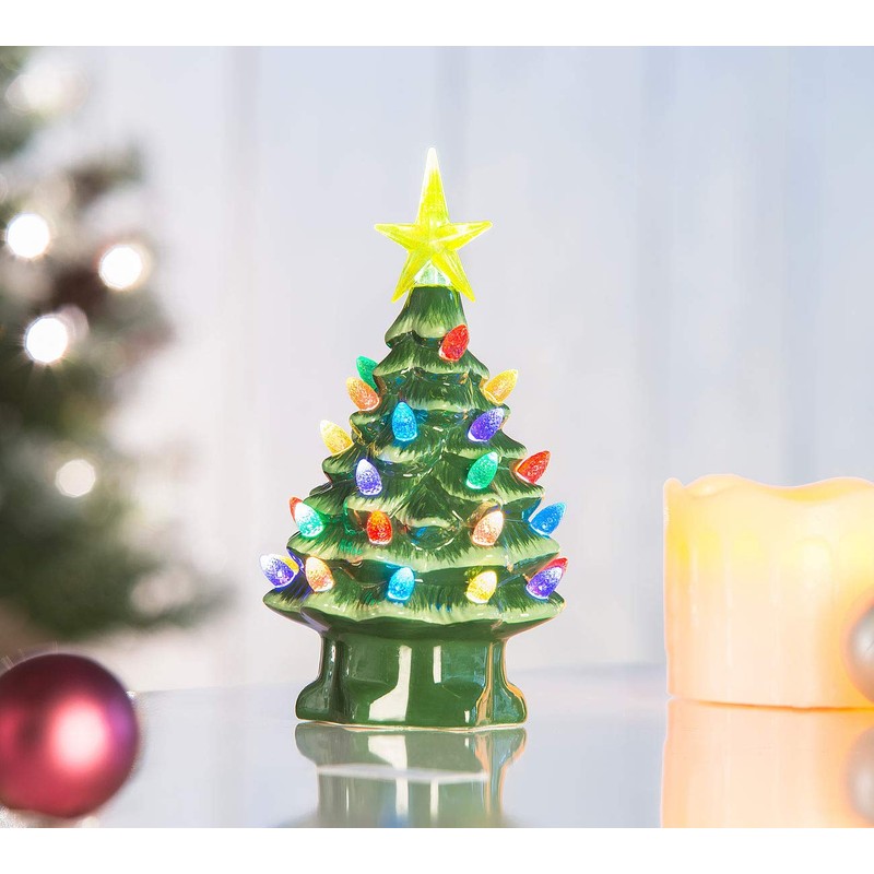 infactory Small Christmas Tree: Decorative Ceramic Christmas Tree with LED Li...