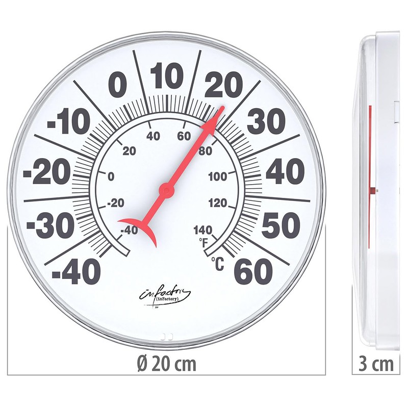 infactory Wall Thermometer: Bimetal Thermometer for Indoor and Outdoor Use, Temperature in C° and F° (Bimetal Thermometer, Outdoor Wall Thermometer)