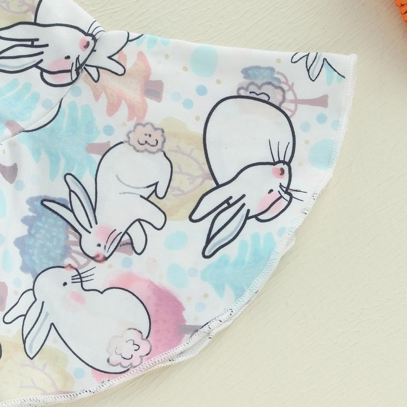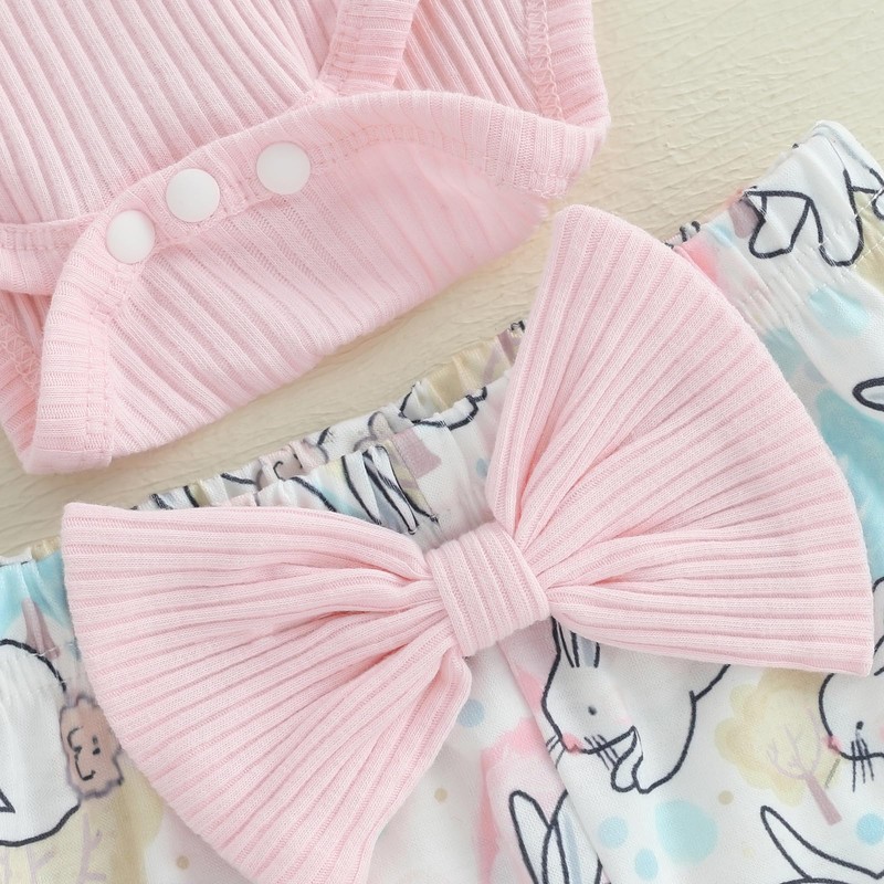 - Design: Easter outfit baby girl, newborn infant eastert bunny outfit; Short sleeve round neck letter bunny print romper; Elastic band flared pants with plush ball decor; Skin-friendly and comfortable