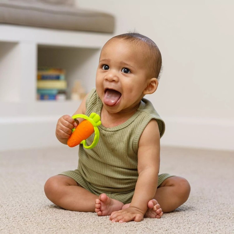 Infantino Lil' Nibbles Silicone Teether - Orange Carrot, Sensory Relief Baby Toy