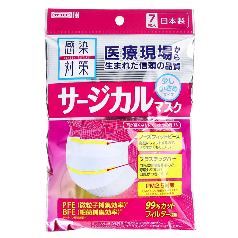 "infection prevention sa-zikarumasuku slightly smaller size 7 pieces" is a plastic bar with space to make your mouth, so you can breathe easy sa-zikarumasuku. Ear to ear sore and hard fat rubber. PFE (particle cut oxidation efficiency: 99% cut, BFE (bacterial oxidation efficiency (99%). Made in Japan. (1) Use the ear straps attached to folks who have no-zufittopi-su, on the inside it is a top to wear on and no-zufitto to match the shape of your nose.