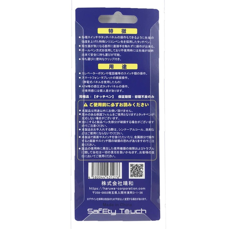 - The safety touch uses the same retractable type as a ballpoint pen, and the tip can be stored on the main unit. Rest assured that your body and belongings will not easily touch the tip when carrying