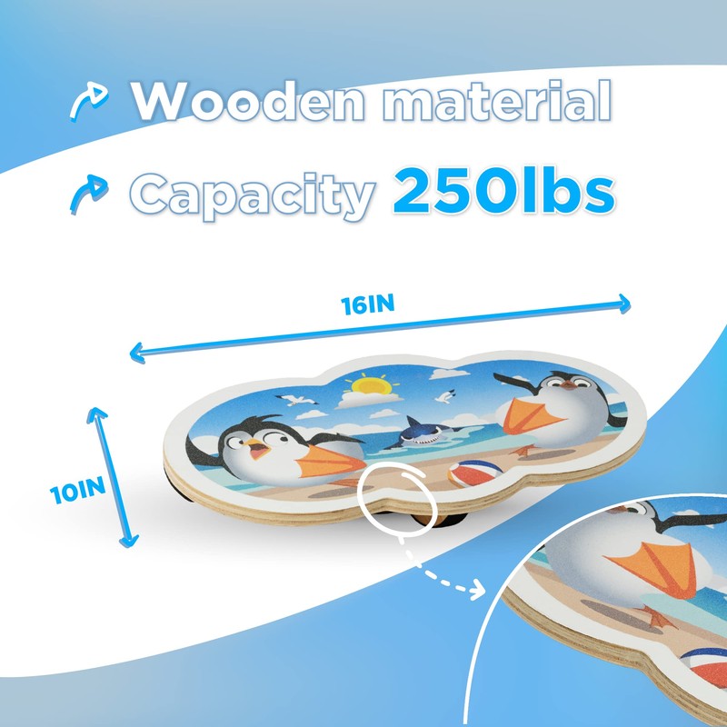 - FUNNY DESIGN. The kid balancing board is designed with the cute penguin pattern which is eye-catching for kids to play indoors or outdoors, while improving balance, agility, coordination, and more.