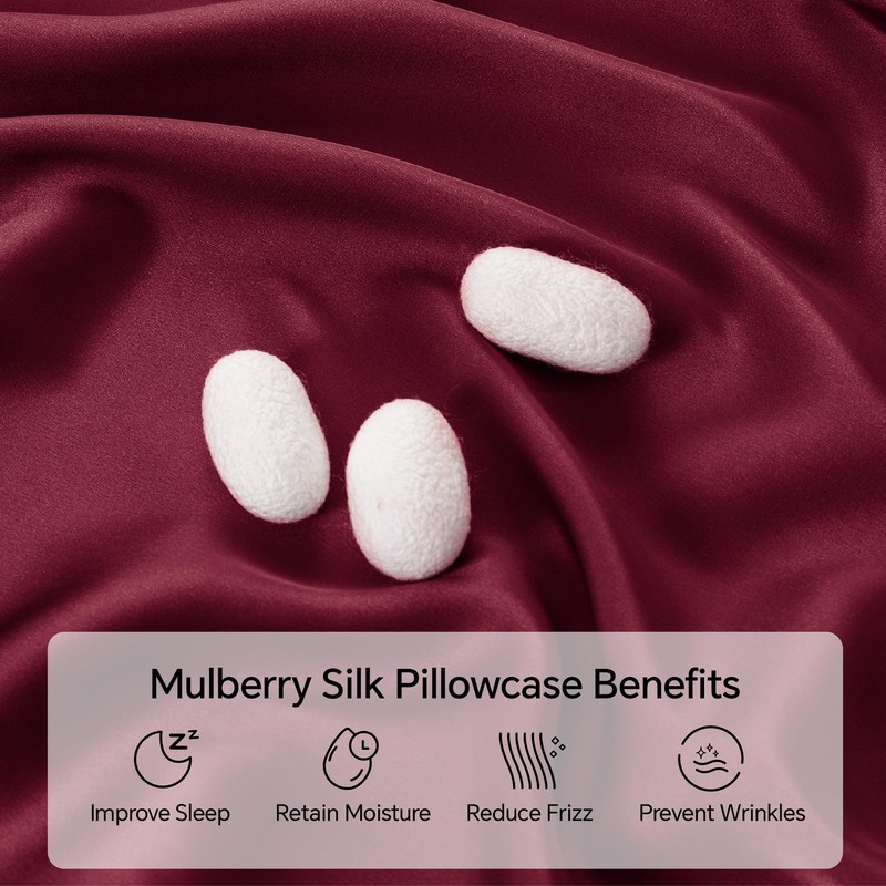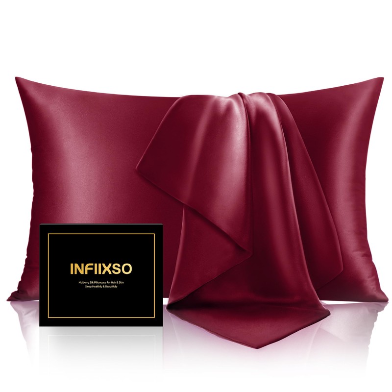 INFIIXSO Mulberry Silk Pillowcase for Hair and Skin, Silk Pillow Cases Standard Size with Hidden Zipper 20x26 Inches, Super Smooth and Soft Cooling Pillow Cases for Hot Sleepers(Burgundy, 1 Pack)