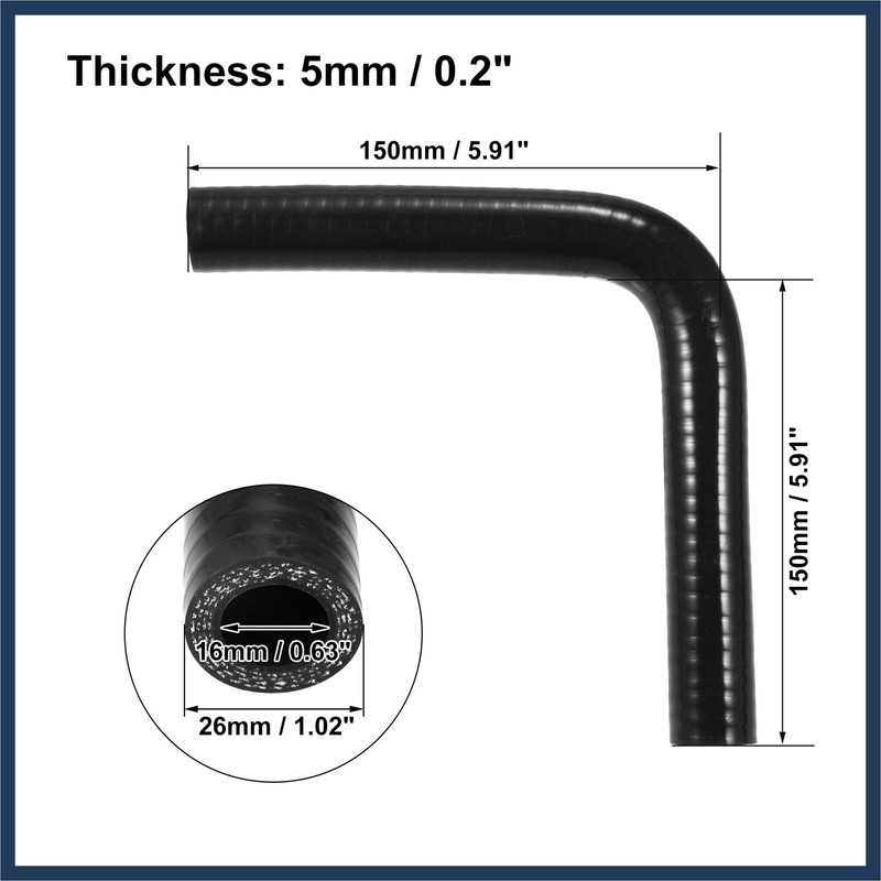 INFINAUTO 16mm 0.63" ID 90 Degree Elbow Silicone Reducer Hose Pipe Bend Turbo Water Intercooler Black Stylish Design