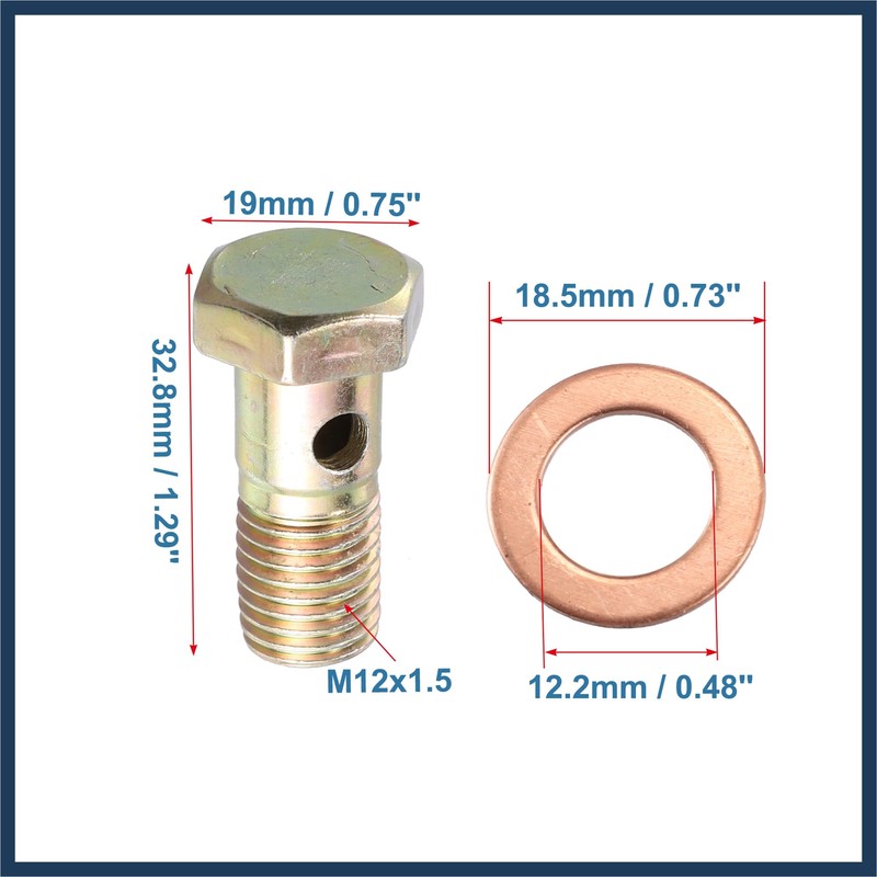 INFINAUTO 2 Set Banjo Bolt Brake Fitting Adapter M12x1.5 Thread Banjo Bolt St...
