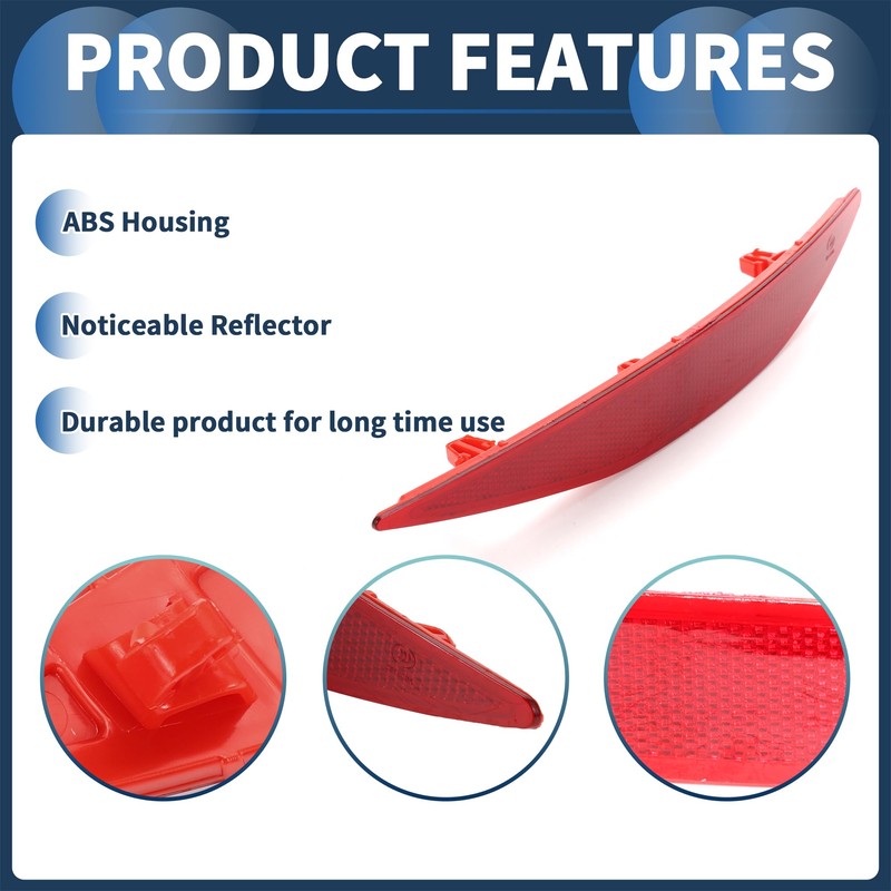 • Product Characteristics:The bumper reflector reflects light from other vehicles through a retroreflective process, which makes your bumper visible even at night, thereby helping other drivers to maintain a safe distance.
