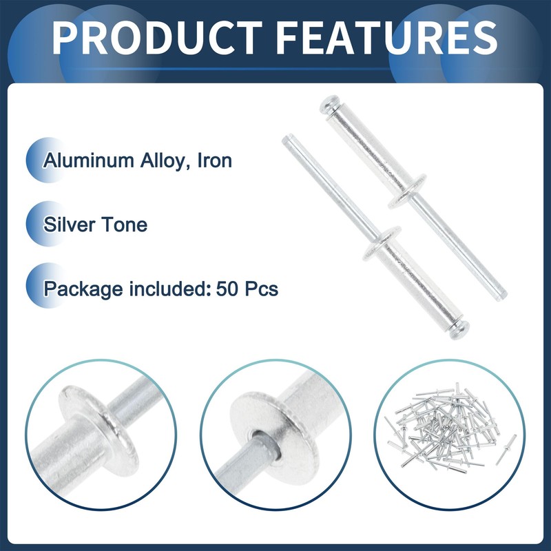 - Package List: 50(+/-2%) Pcs Dome Head Large Flange Blind Rivets.