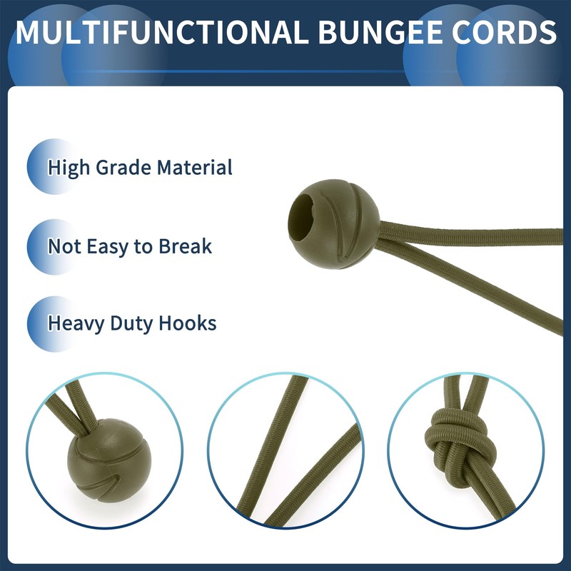 - Product Features: Our heavy duty bungee cords are characterized by their resistance to high temperatures, rays, and adverse weather conditions, rendering them ideal for outdoor pursuits irrespective of the weather. They maintain their flexibility and toughness throughout the year, ensuring durability regardless of the season.