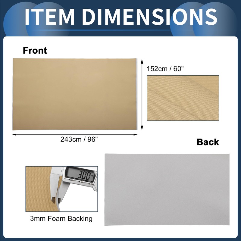 - Package List:1 x Roof Headliner Breathable Mesh Fabric Repair Fabric with 3mm Foam Backing. Size:96" L x 60" W with Foam Backing. Color:Brown. Thickness:3mm.