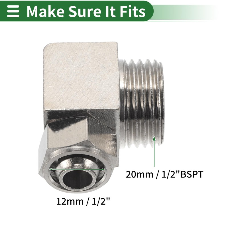 INFINAUTO Push to Connect Air Fittings 12mm / 1/2" 90 Degree Elbow Air Line Quick Joint Nickel Plated Copper 20mm / 1/2"BSPT 2 Pcs Silver Tone