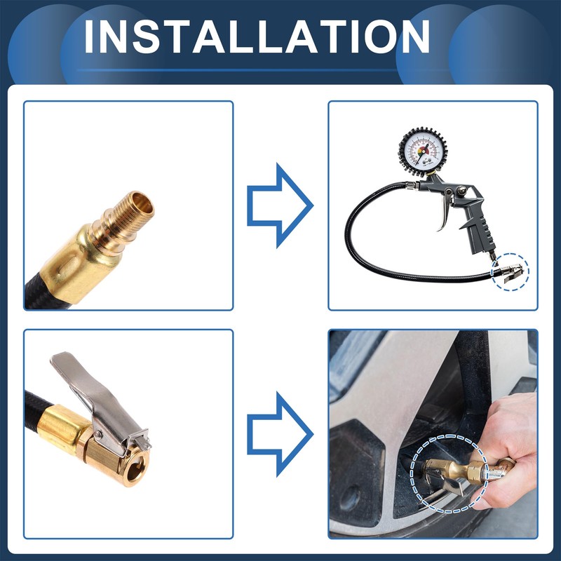 - Easy Installation:Screw adapter end onto originally inflator hose, press to clamp adapter head onto tire valve, start the inflator for a quickly and none leaking inflation.