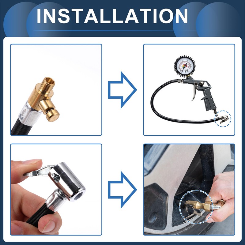 - Easy Installation:Screw adapter end onto originally inflator hose, press to clamp adapter head onto tire valve, start the inflator for a quickly and none leaking inflation.