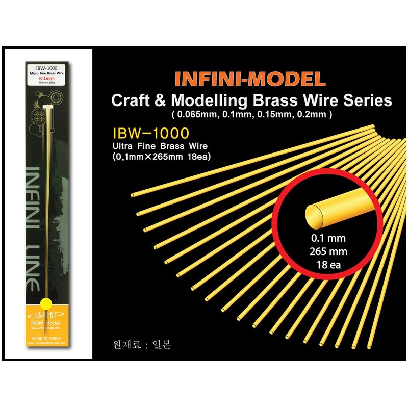 Infini Model IBW Series IBW1000 Brass Wire, Diameter 0.004 inches (0.1 mm), Length 10.4 inches (265 mm), Pack of 18, Hobby Material