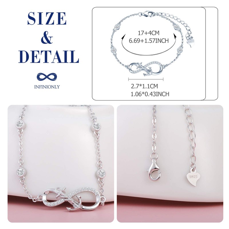 INFINIONLY Women's Bracelets, 925 Sterling Silver Bracelet, Infinity Symbol Bracelets with Anchor, Decorated with Diamonds, Heart or Stars, Silver, Inlaid Zircon, Anchor Bracelet, Sterling Silver,