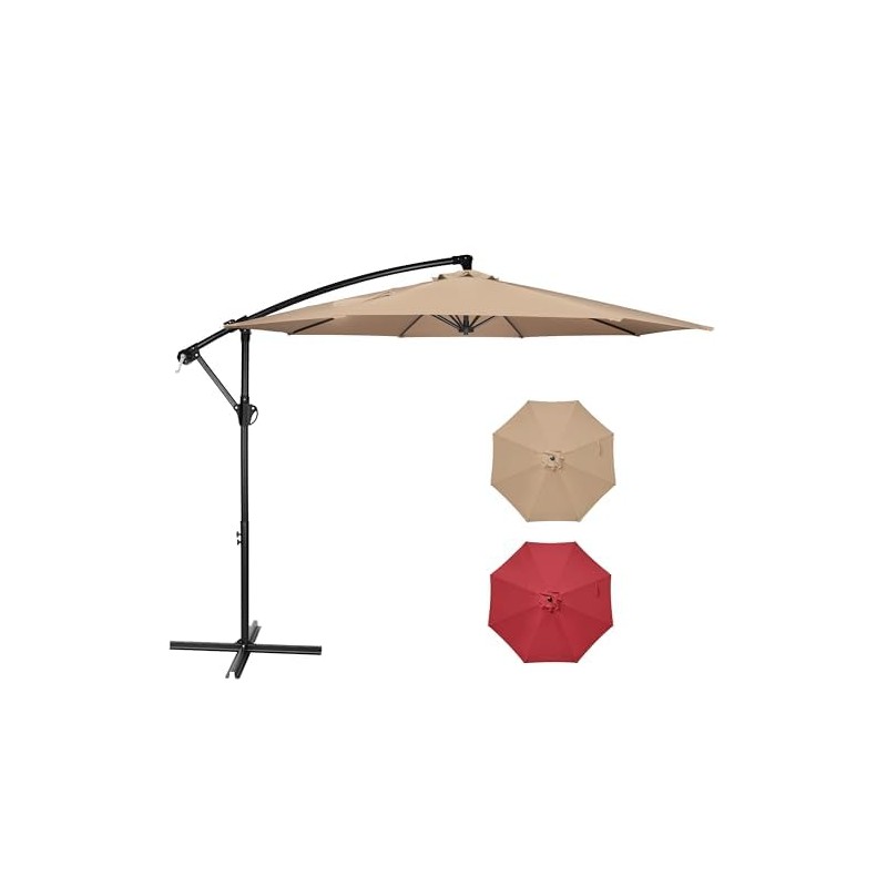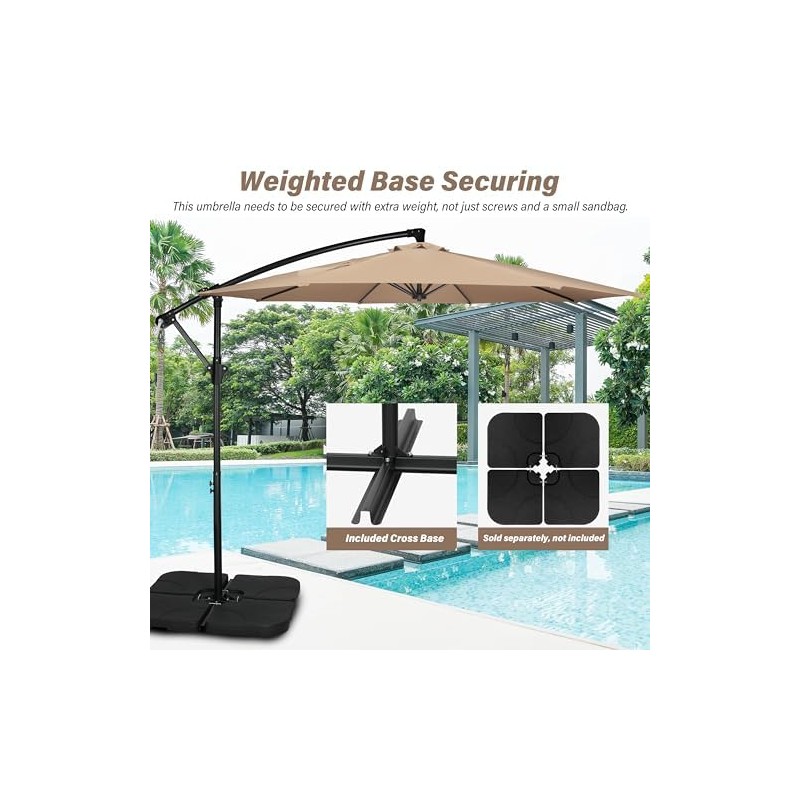 InfiniPower InfiniPower 10ft Cantilever Patio Hanging Umbrella Offset Outdoor Market Umbrellas with Easy Tilt Adjustment, for Backyard, Poolside, Lawn and Garden, Tan