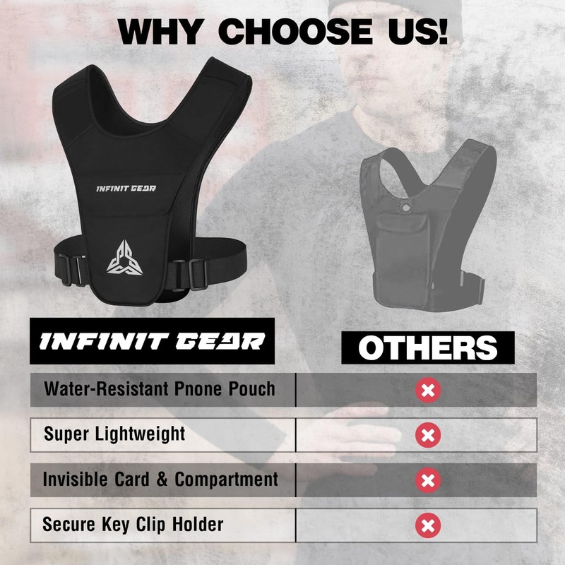 - 𝗦𝗧𝗔𝗕𝗟𝗘 & 𝗦𝗘𝗖𝗨𝗥𝗘: Unlike bouncing armbands, our phone chest mount is best phone holder for running with pocket keeps your device secure and stable. This complete running backpack with innovative design lets you focus on your run, not worrying about your phone bouncing or slipping out.