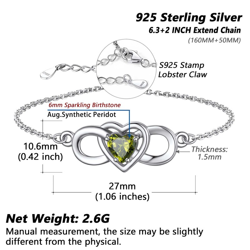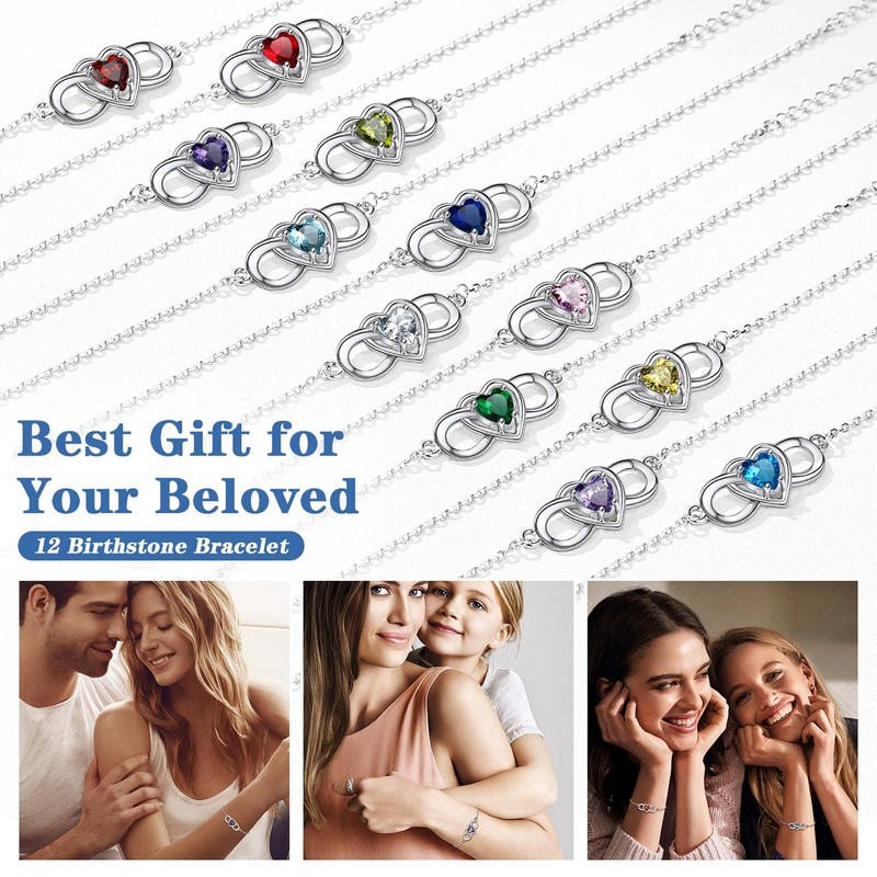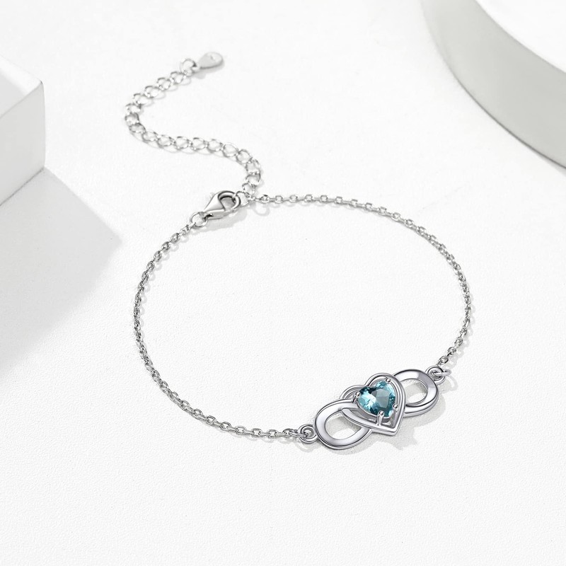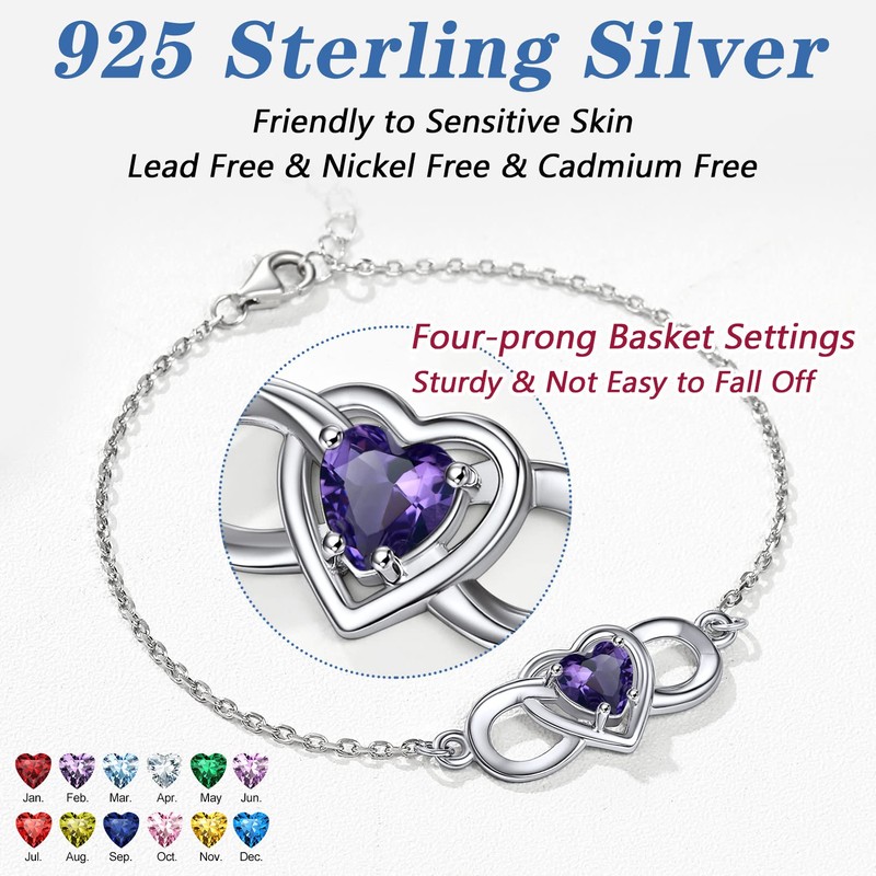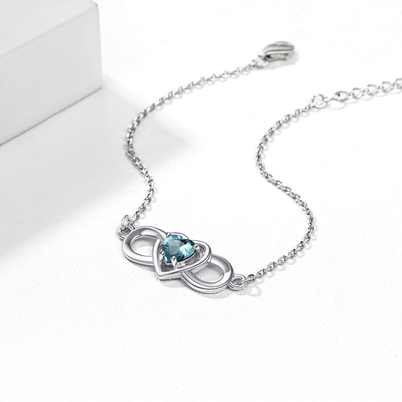 Infinity Bracelet Feet Chains for Women Sterling Silver Fashion Birthstone Heart Bracelet Summer Dainty Jewelry