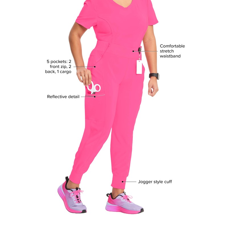 - FUNCTIONAL AND CONVENIENT STORAGE - Our scrub pant for women features five pockets, including front-angled zipper pockets, a cargo pocket with reflective tape for enhanced visibility, and two back patch pockets, ensuring your essentials are organized and easy to access.