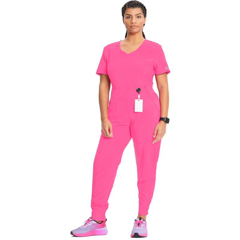 Infinity Cherokee Women's Scrub Jogger Pants Mid Rise with Moisture Wicking 360° Stretch Fabric Plus Size CK110A, 3XL, Carmine Pink