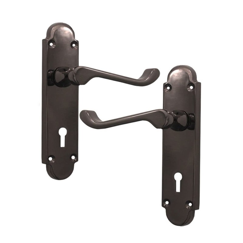 Infinity Decor Victorian Scroll Lever Lock Pull Handles on 168mmx40mm Shaped Backplate in Black Nickel Suitable for Internal and External Doors