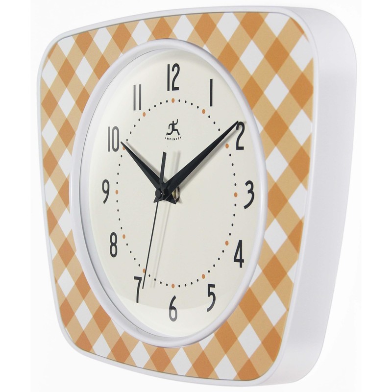 Infinity Instruments LTD. Plaid Trapezium Wall Clock, Orange, 9.25" x 10.875"