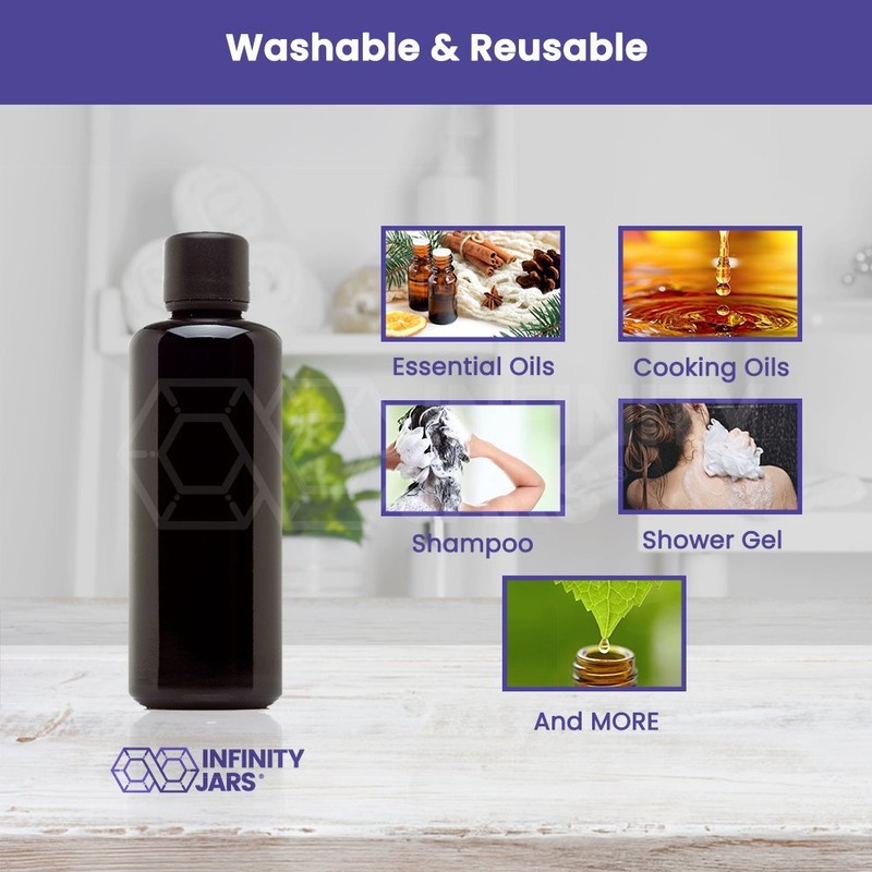 Infinity Jars 100 ml (3.38 fl oz) Black Ultraviolet Glass Easy Pour Screw Top Bottle