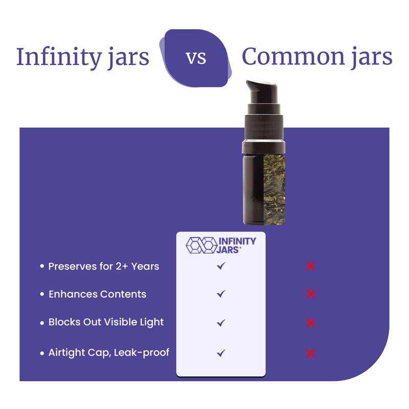Our infinity jars/infinity bottles stand out from typical travel bottles with their wide opening, making filling and cleaning a breeze. The pump head allows for precise control of the liquid spray, ensuring a consistent and delicate output with each press.