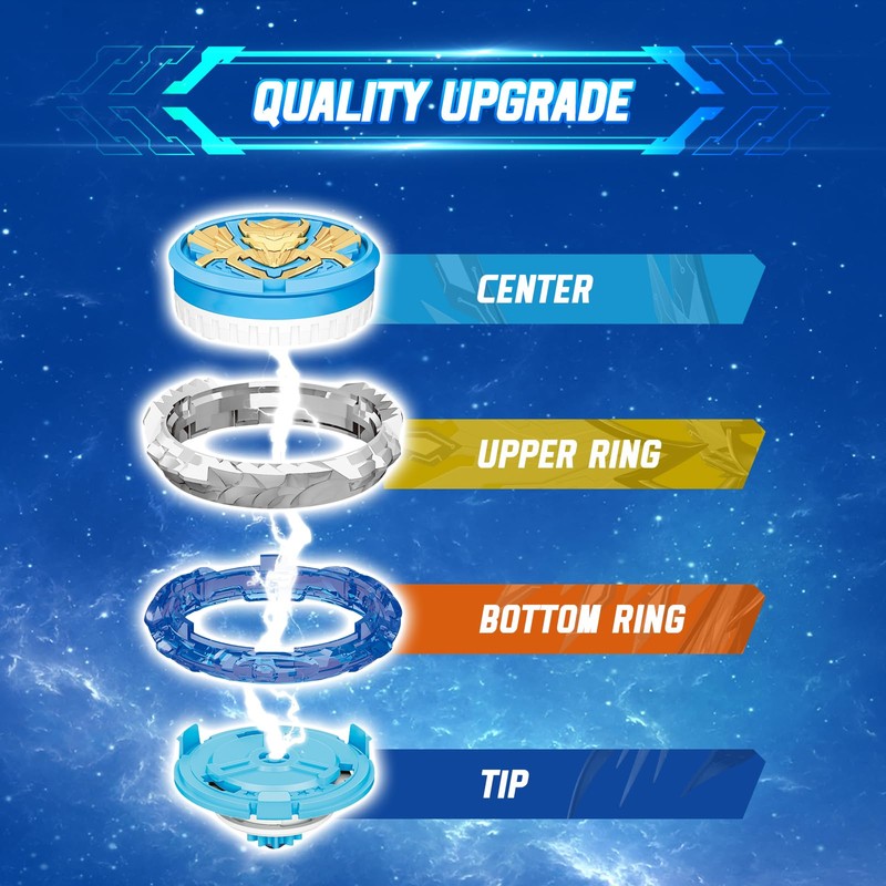 - Motor Skills and Coordination: Playing with battling top toys helps kids improve hand-eye coordination, fine motor skills, and critical thinking, while also promoting social interaction through friendly competition; Plus, the sword's design screams "cool" while providing a comfortable grip
