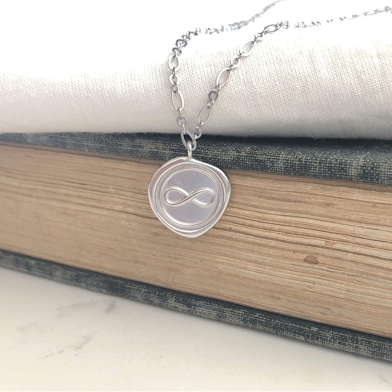 Infinity Wax Seal Necklace in Sterling Silver 925